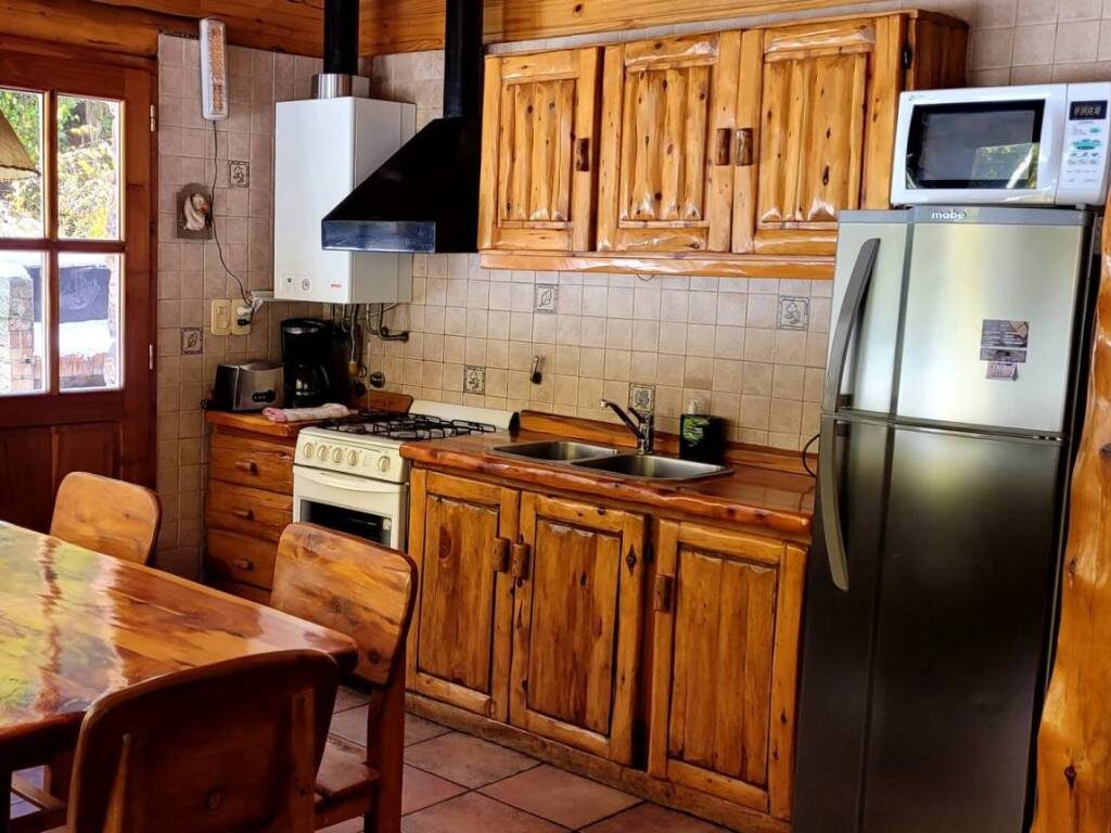 Cada cabana dispõe de cozinha completa, lareira, sala de estar e jantar, quarto de casal e quarto individual com roupa de cama, além de banheiro privativo. Também conta com estacionamento individual e churrasqueira.